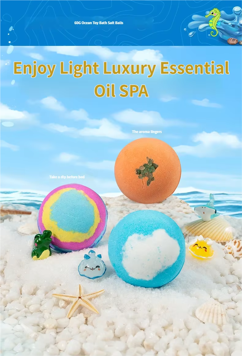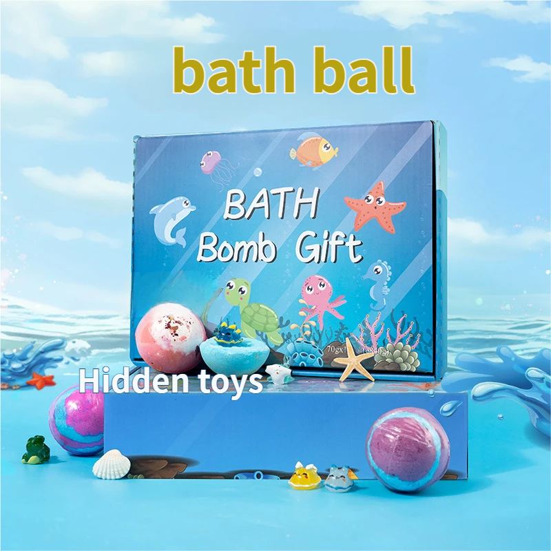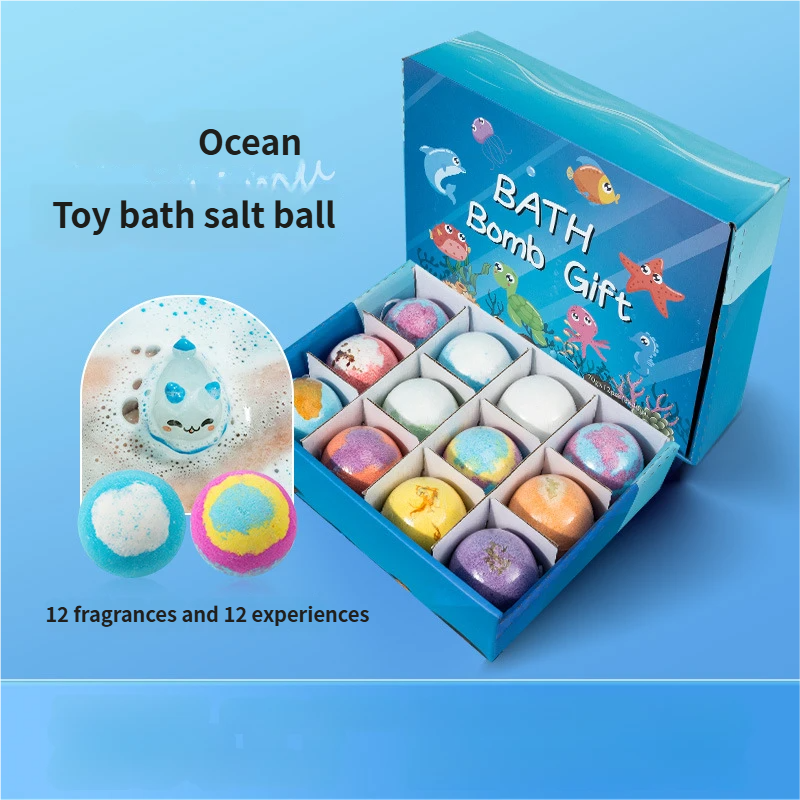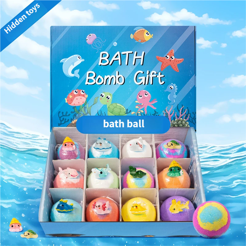 Children's Bath Salt Ball Toy Set: Boxed Bubble Bombs with Christmas Animal Bath Toys